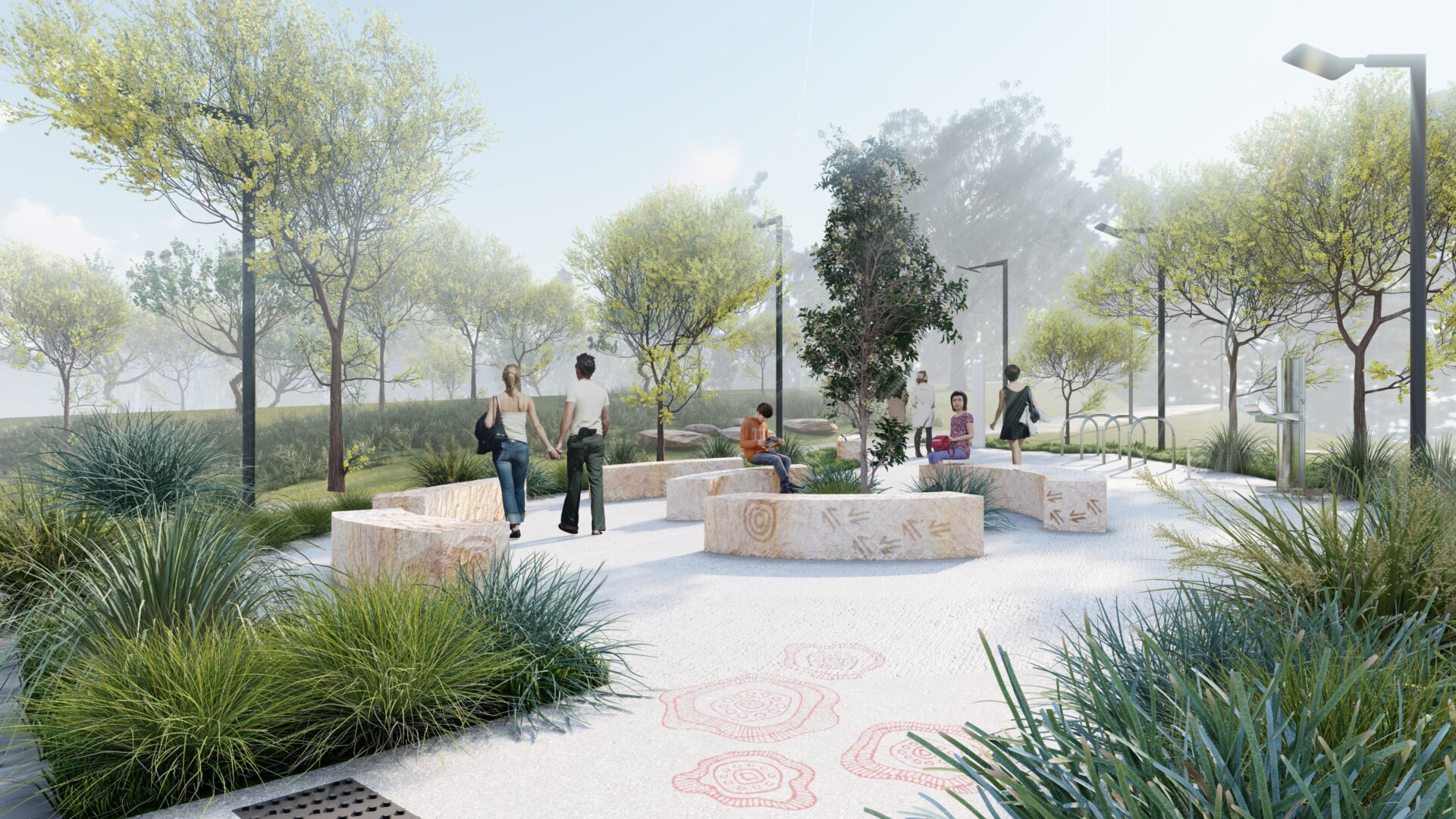 CONTEXT’s Stage 2 Design and Landscape Plan (DLP) integrates cultural storytelling and environmental design. Artworks include Spears, Shields, Warriors, Maria and Robert Lock, Light Beams, and a typographic installation of Son of Mine by Oodgeroo Noonuccal. Each piece is framed within a responsive landscape that supports interpretation, engagement and reflection.